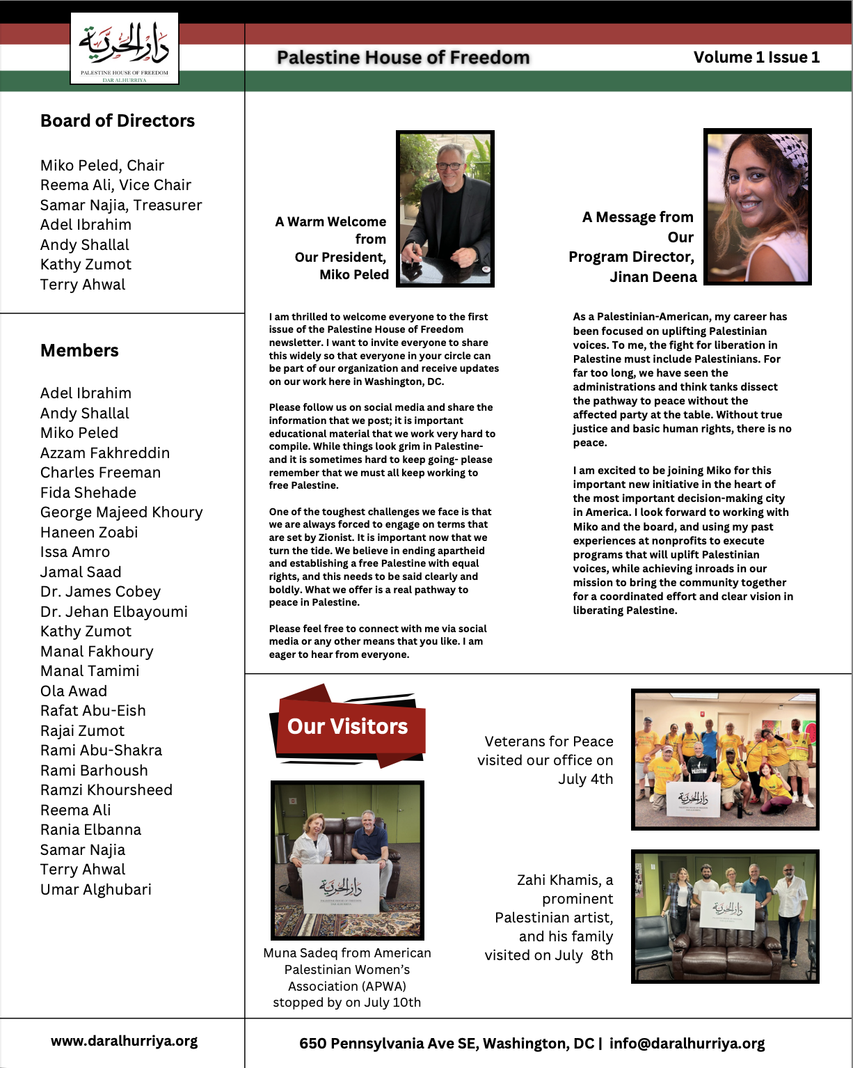 Stay up to date with the Palestine House of Freedom newsletter! Subscribe to our mailing list or read indivudual issues below.